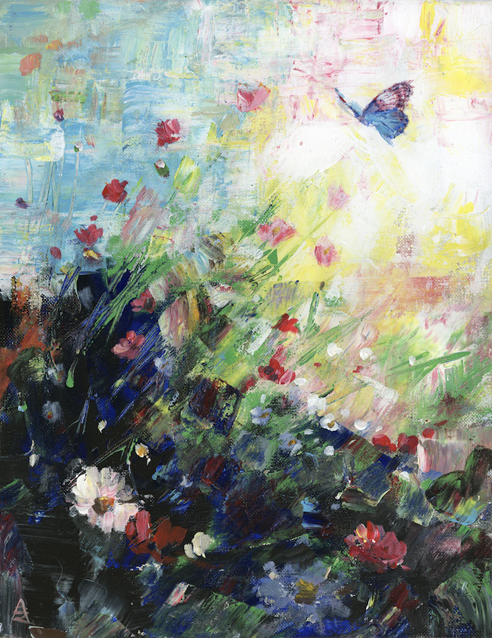 “Butterfly” by Andy Bahk reflects themes of transformation, fragility, and emergence. Executed in acrylic on canvas, the work balances expressive mark-making with symbolic clarity. The composition captures the tension between softness and structure, evoking the fleeting nature of change.