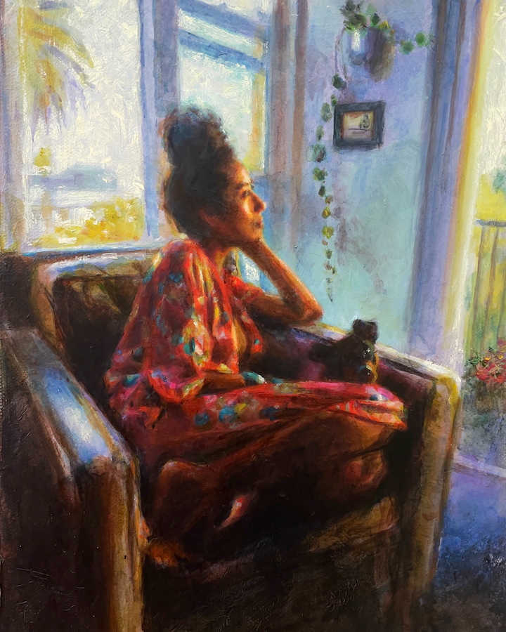 “Windows” is a 2020 mixed media painting by Constance Brantley, created with acrylic, paper, and oil stick on canvas. The work reflects Brantley’s layered approach to memory and perception, using torn paper and textured paint to create a sense of fragmented observation and emotional depth.