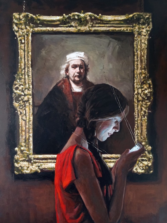 “Zoom Back to the Rembrandt” is a 2026 acrylic on canvas painting by Mehrdad Sedghi. The work engages in a contemporary dialogue with art history, referencing the legacy of Rembrandt van Rijn while reinterpreting classical sensibilities through a modern lens. Through layered acrylic application and dynamic composition, the painting explores time, influence, and reinterpretation, bridging past and present with expressive intensity.