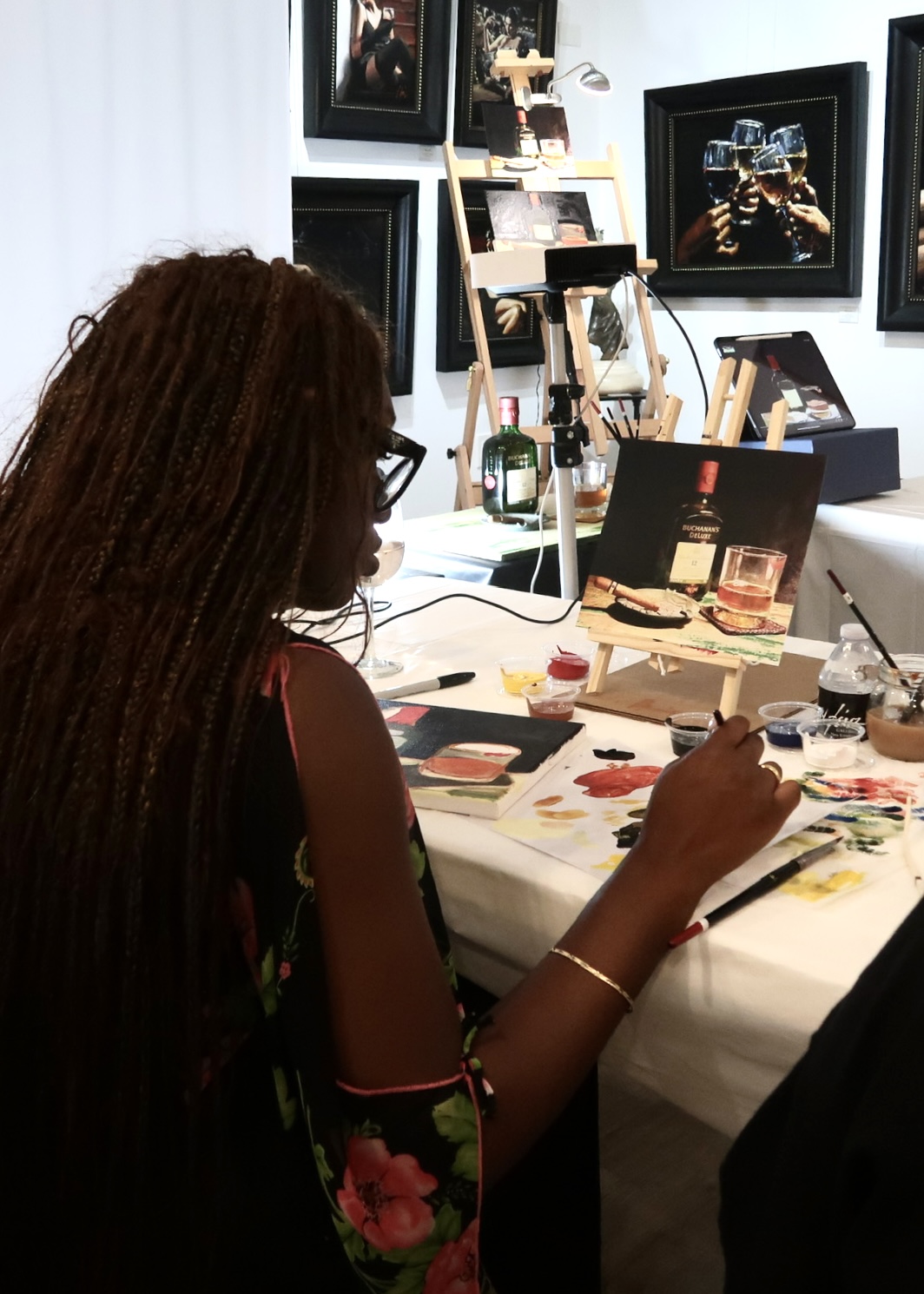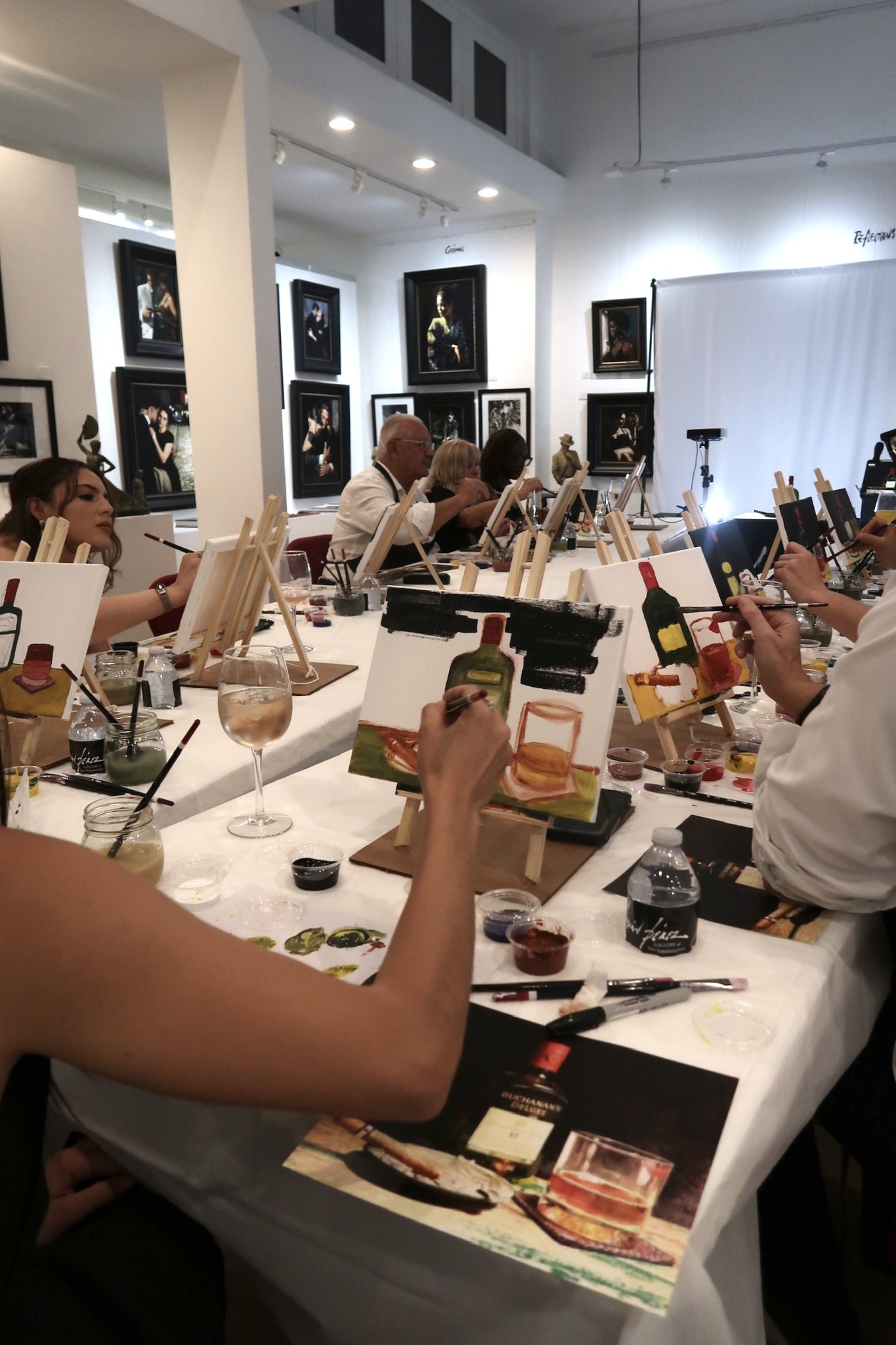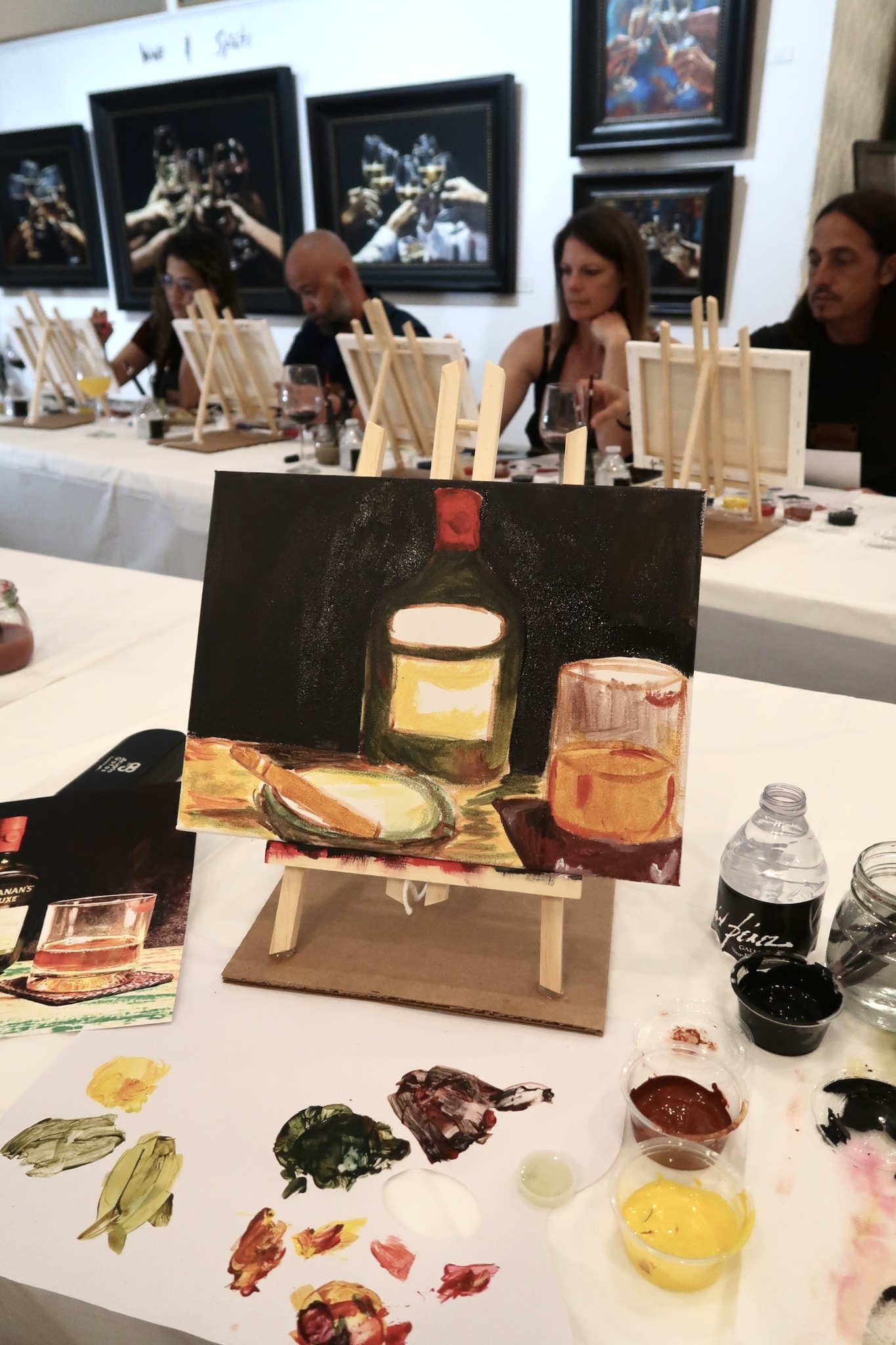 Inspired by Fabian Perez’s Characters of the Night Collection. Participants were able to paint a Whiskey Bottle, Cigar, and a Glass Cup.