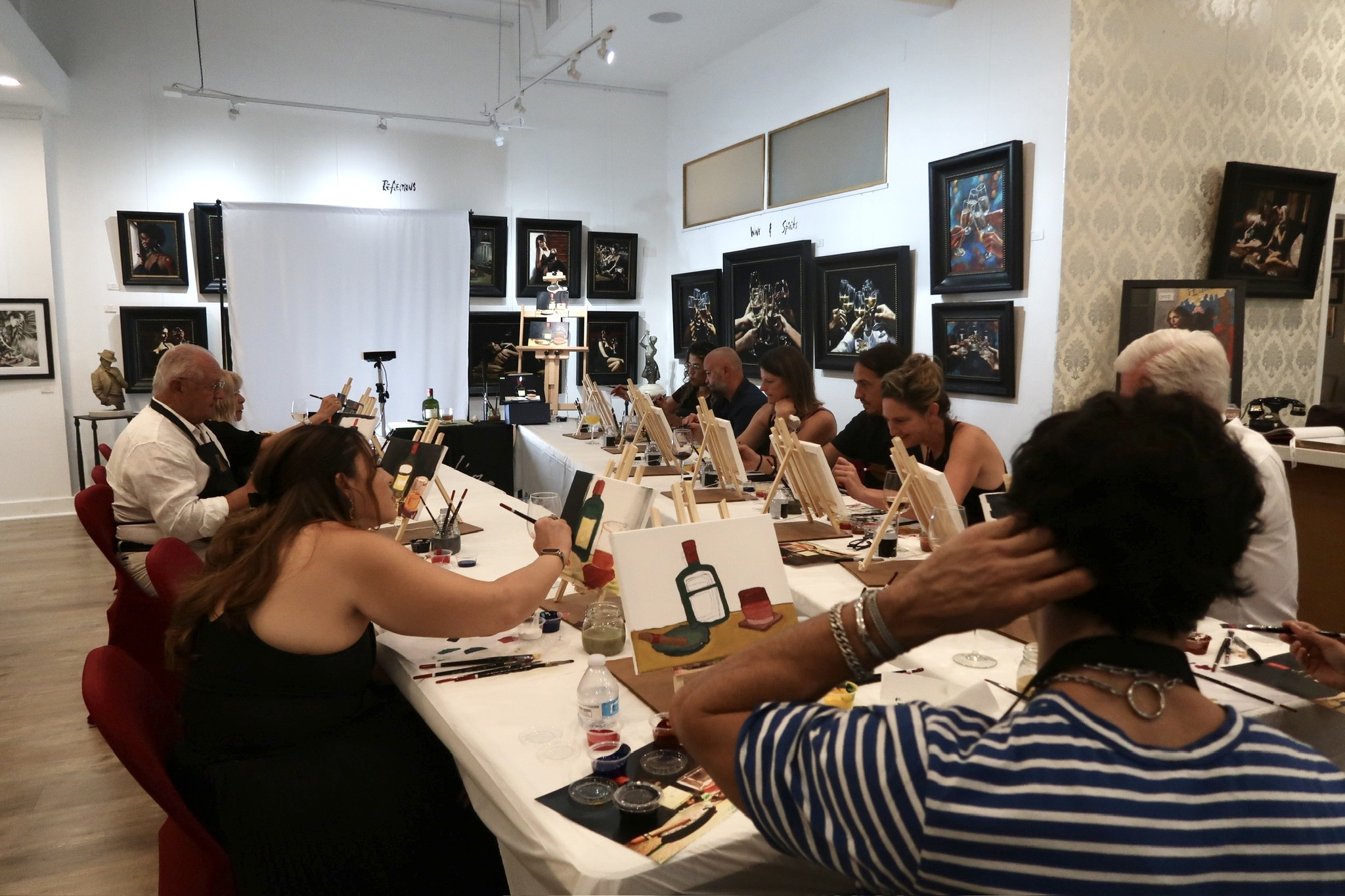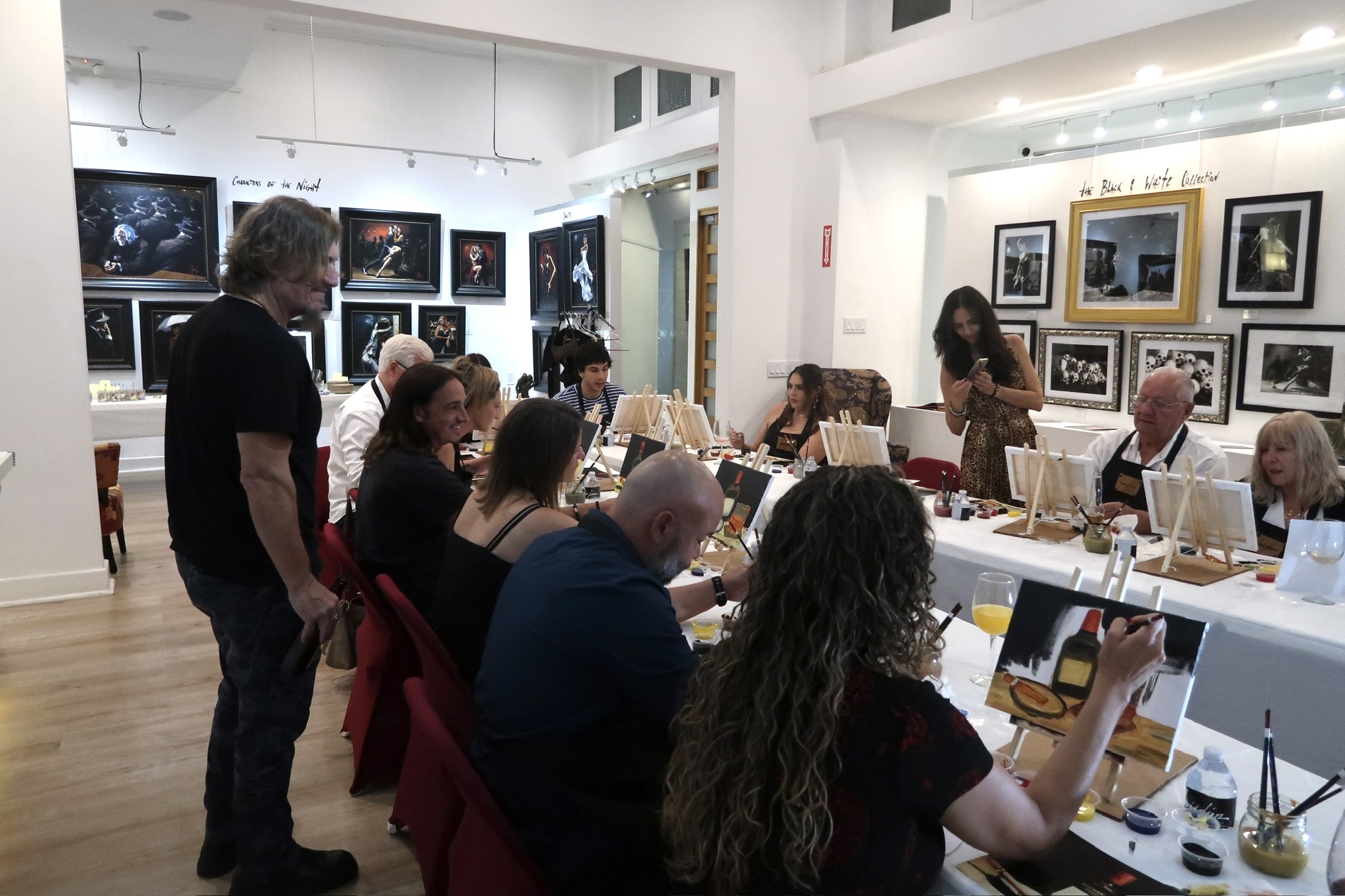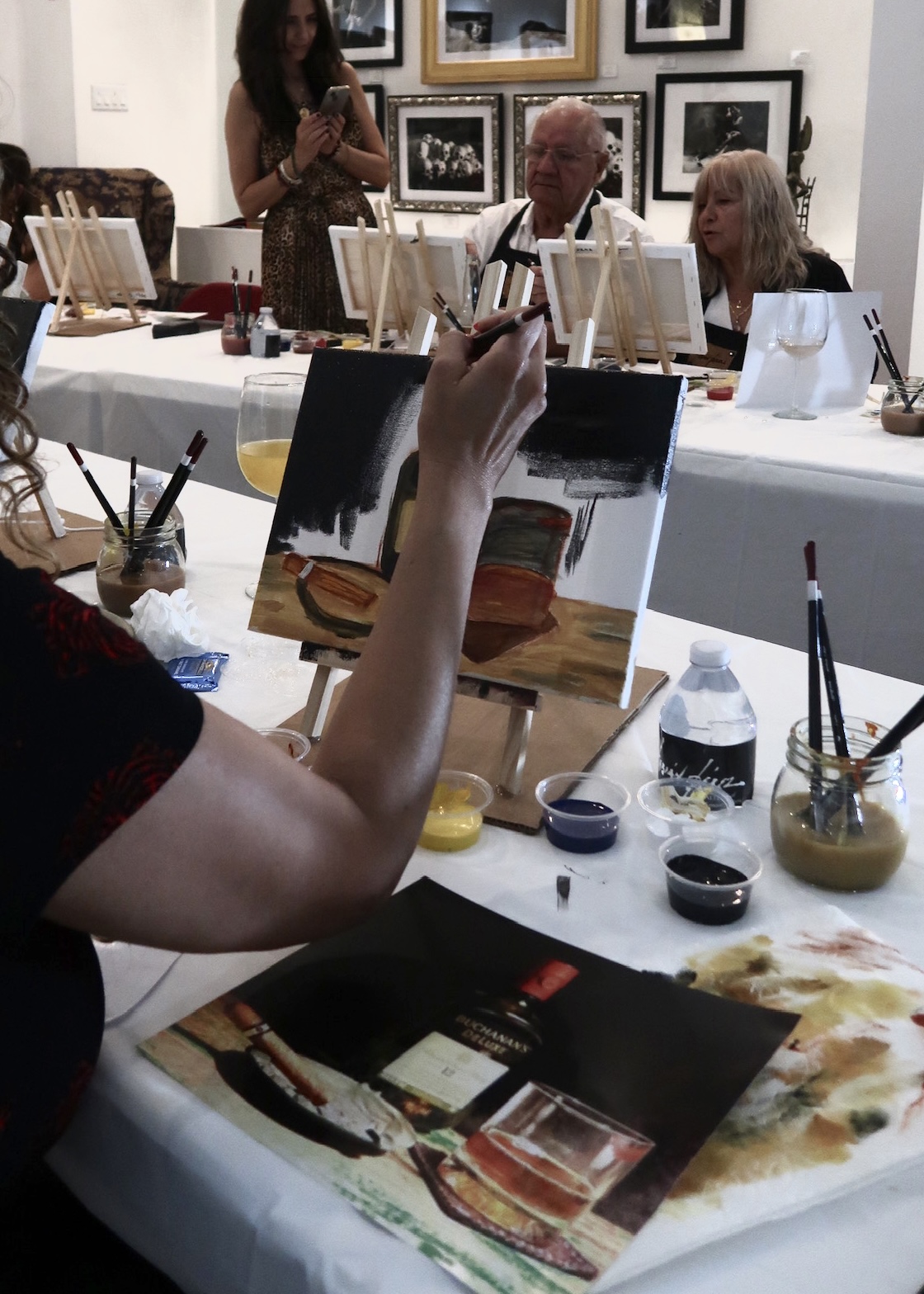 Inspired by Fabian Perez’s Characters of the Night Collection. Participants were able to paint a Whiskey Bottle, Cigar, and a Glass Cup.