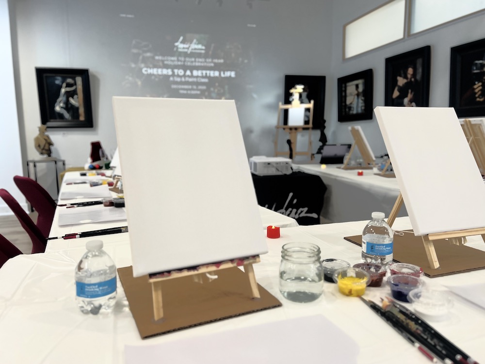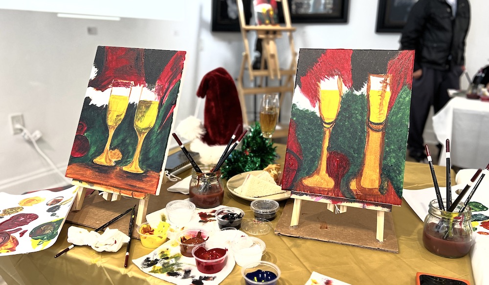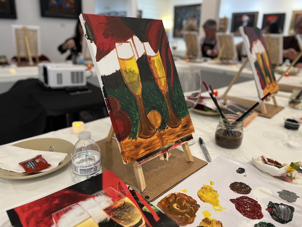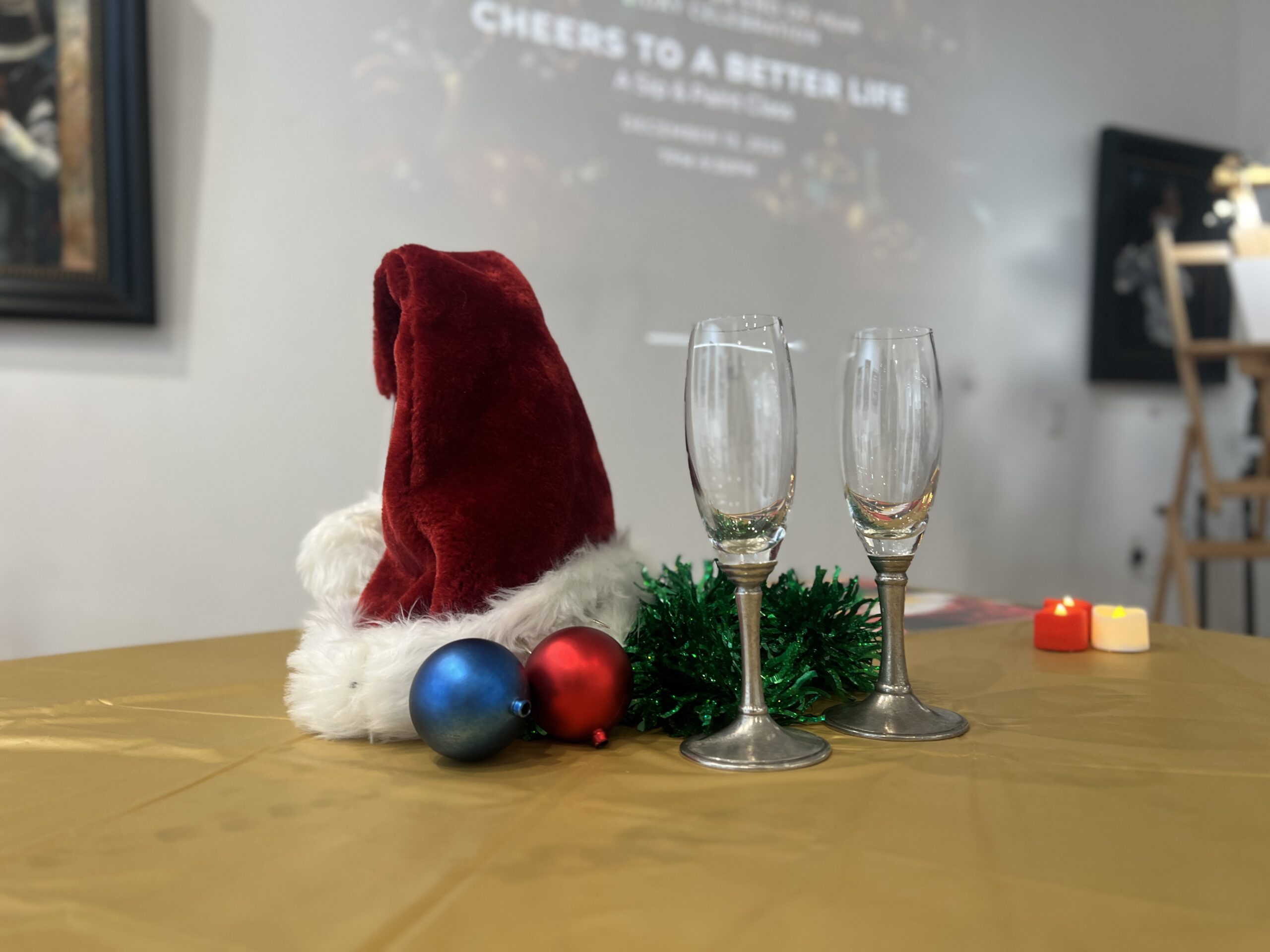 Thank you for attending our Cheers to A Better Life Sip and Paint Class at Fabian Perez Gallery of Neo-Emotionalism on December 13th, 2025. We painted an observational setup of a Holiday Hat along with Champagne Glasses inspired by Fabian Perez’s Wine and Spirits Collection.